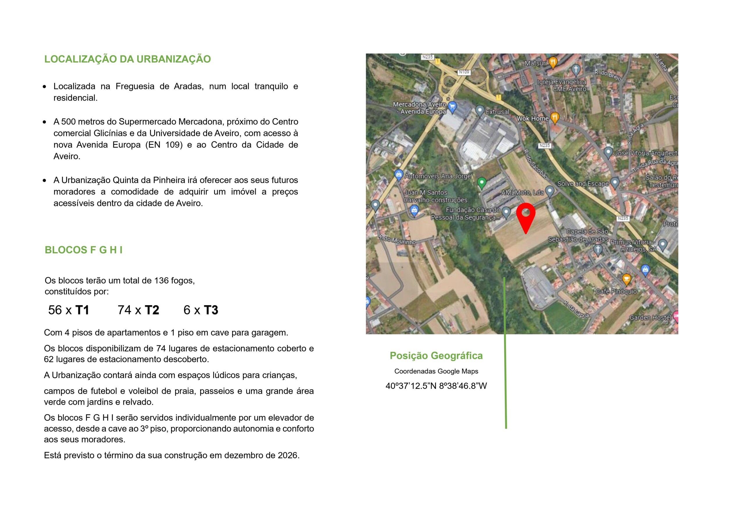 Após o sucesso de vendas das 112 frações do Lote 2, o qual está todo comercializado, não perca a oportunidade de adquirir o seu apartamento a preços muito inferiores aos praticados no mercado de Aveiro. Informe-se pela SALFAI Lda. em como pode adquirir o seu apartamento.